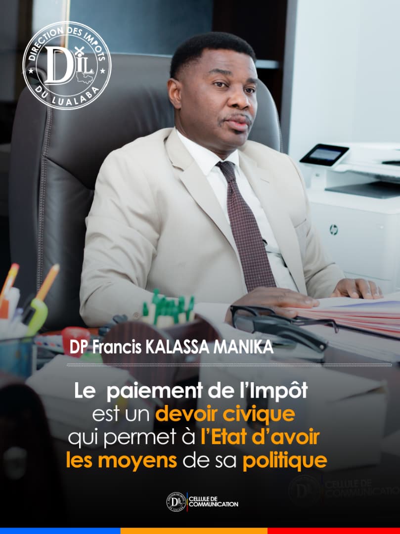 Le Directeur des Impôts de la Province du Lualaba Francis Kalassa Manika lance encore un appel au civisme fiscal en sensibilisant les citoyens et citoyennes du Lualaba au paiement de l'impôt qui permettra à l'Etat d'avoir les moyens de sa politique dans la Province du Lualaba.
