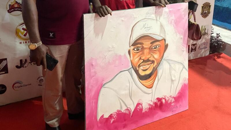 Lors de l'événement humoristique _Lualaba de l'autre côté du miroir_, les artistes comédiens de la Province du Lualaba, emmenés par Kimbala Original, ont offert un portrait au Président National de l'Ong Maman Astride Ngolu, Ibrahim Malango.