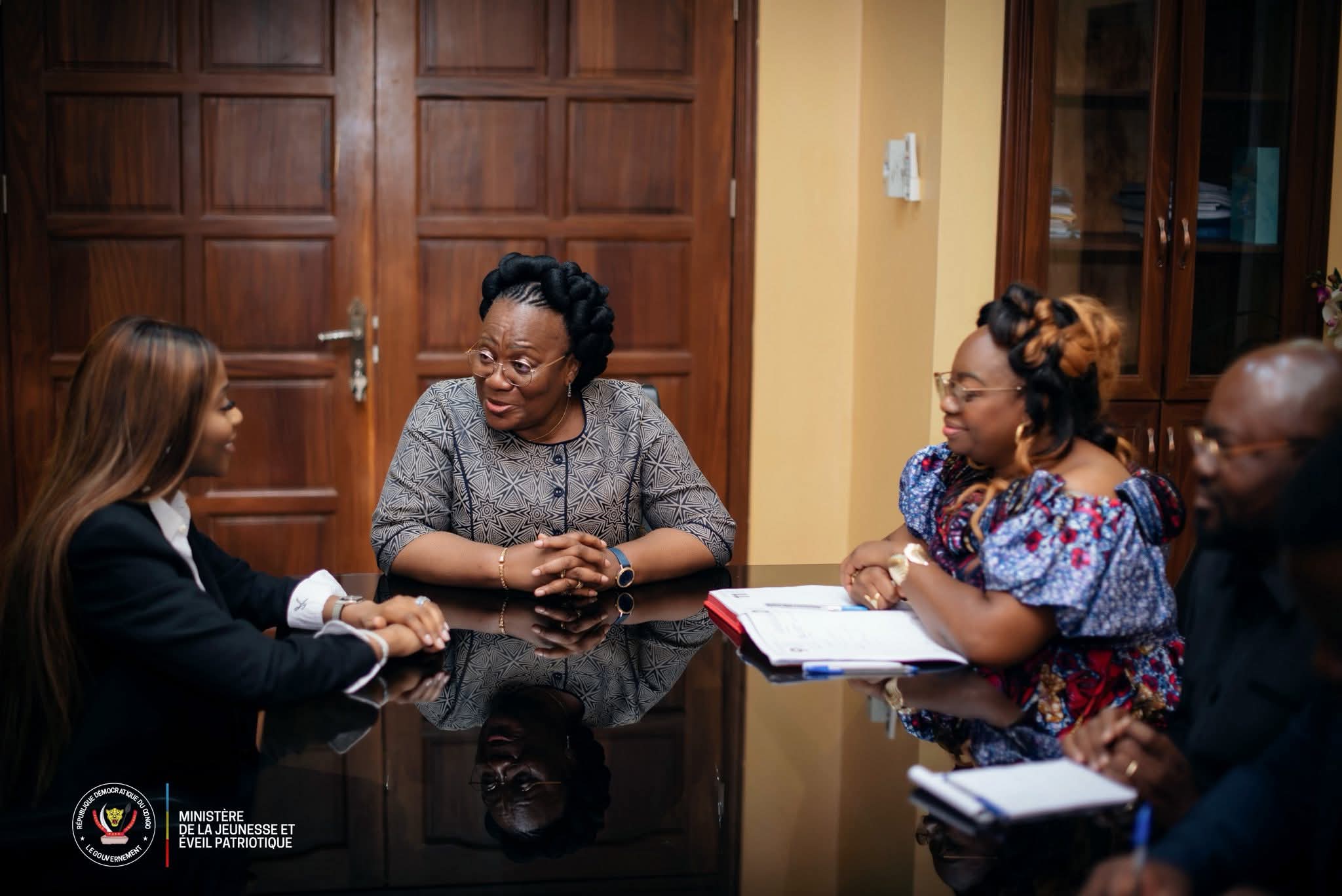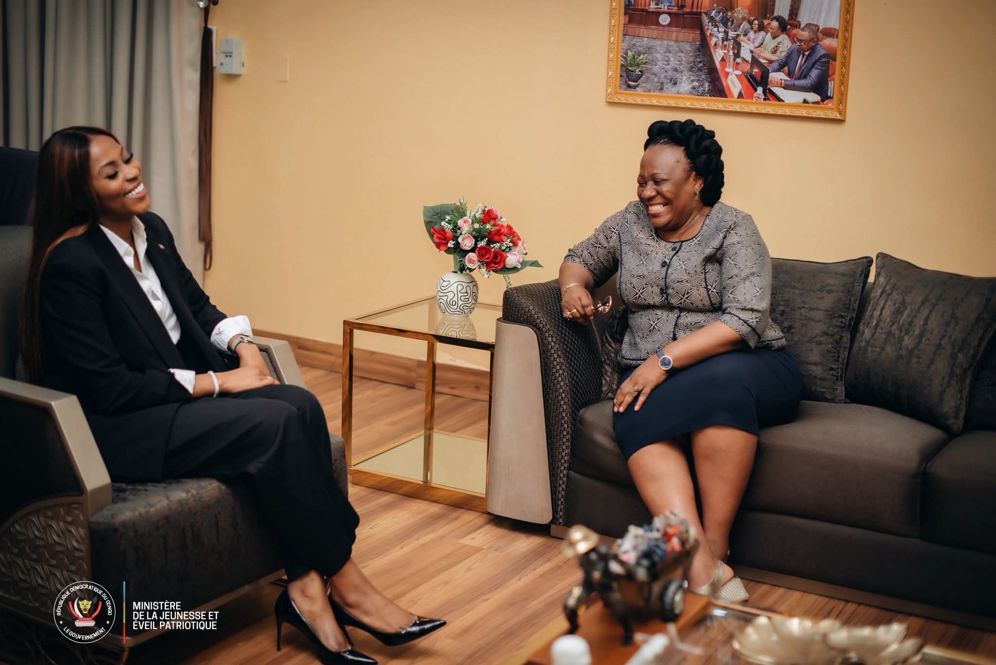 La ministre de la Jeunesse et de l'Éveil patriotique, Grace Kutino, a rencontré la ministre de l'Enseignement Supérieur, Professeure Docteure Marie-Thérèse Sombo, pour discuter de la structuration d'un projet national d'éveil patriotique.