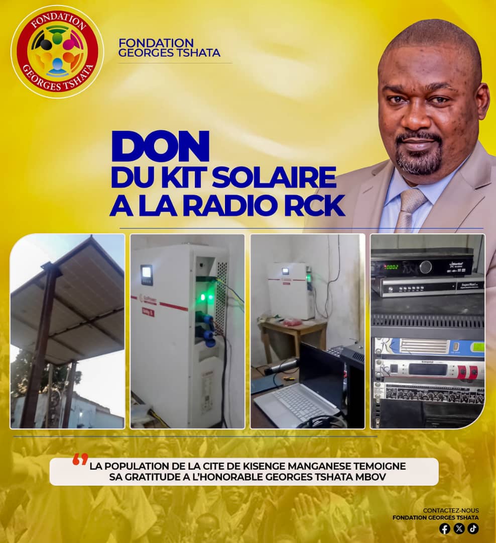 La Radio Communautaire de Kisenge (RCK) a reçu un don de kit solaire de la part de l'Honorable Georges Tshata Mbov, pièce maîtresse du territoire de Dilolo et parrain du développement.