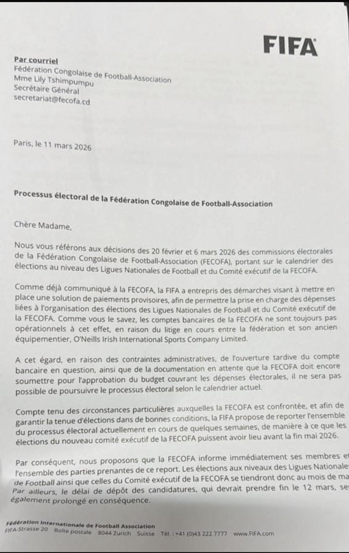 Cependant, en raison de contraintes administratives et financières liées notamment à la gestion des comptes de la fédération, l’instance mondiale propose de reporter le processus électoral au mois de mai. Ce report vise à permettre une organisation optimale des élections et à garantir la transparence et la régularité du processus.