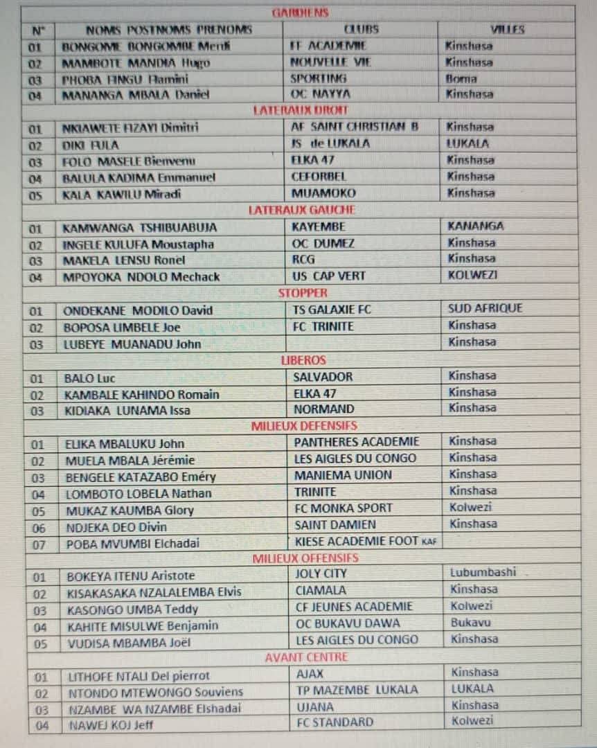Parmi les joueurs retenus, quatre proviennent de la ville de Kolwezi, notamment :
