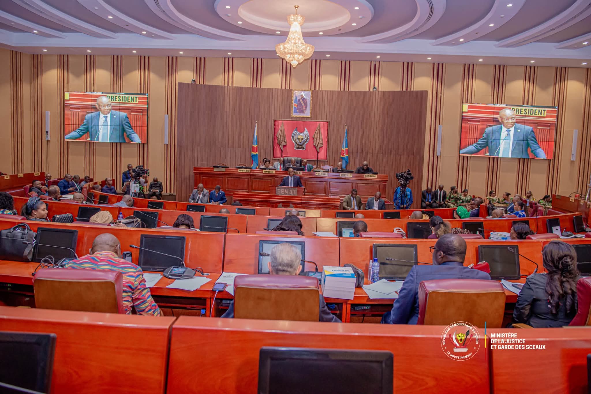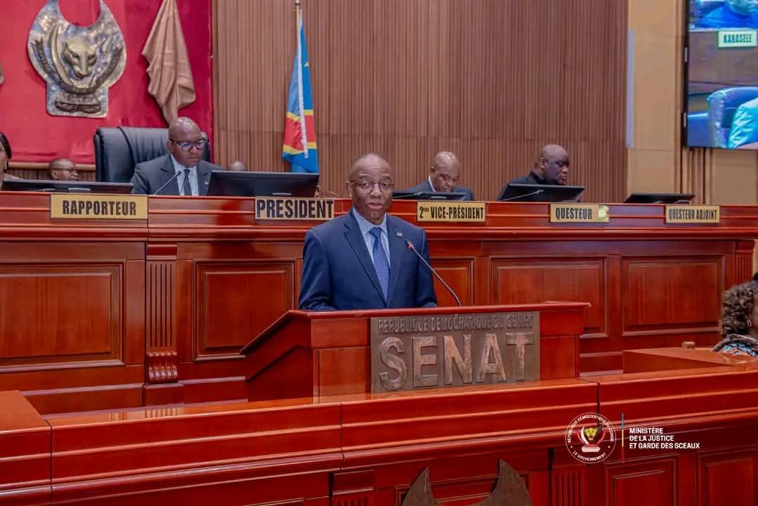 Le Ministre d’État, Ministre de la Justice et Garde des Sceaux, Guillaume Ngefa, a présenté mardi devant le Sénat, au nom du gouvernement, deux projets de loi de ratification des ordonnances-lois prises dans le cadre de l’habilitation parlementaire.