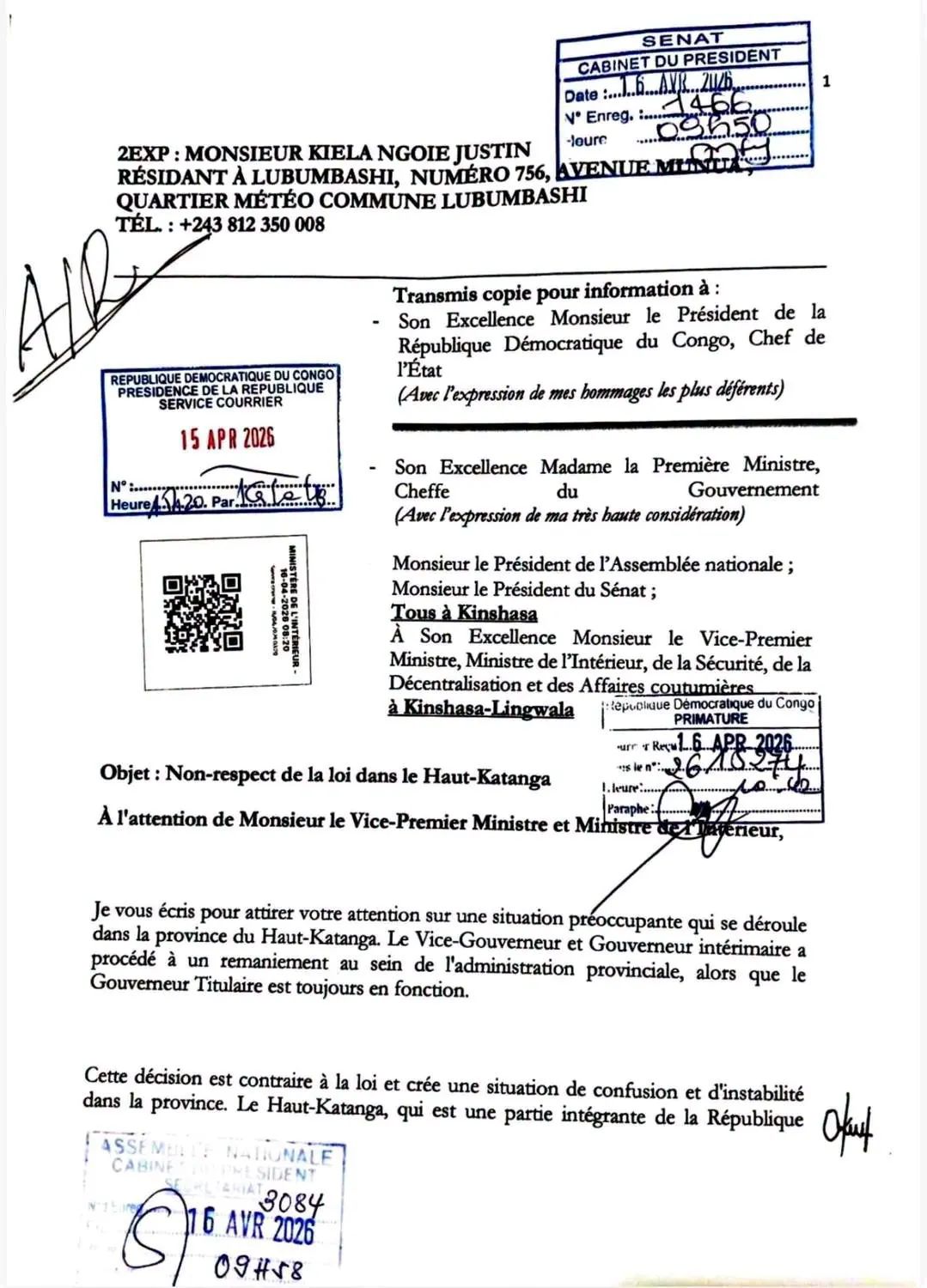 Sans détailler publiquement le contenu exhaustif de la lettre à ce stade, Maître Kiela Ngoie inscrit son action dans la continuité de ses précédentes interpellations visant à garantir l’application stricte des lois de la République sur l’ensemble du territoire national, et particulièrement dans le Haut-Katanga.