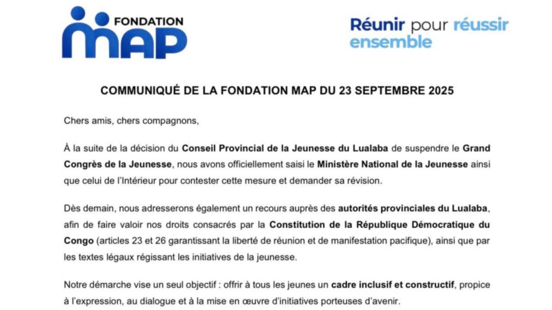 Lualaba- Jeunesse: La Fondation MAP attaque la décision du conseil Provincial de la Jeunesse.