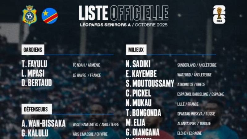 RD Congo- Éliminatoires Coupe du Monde 2026: 25 Léopards pour deux matchs cruciaux.